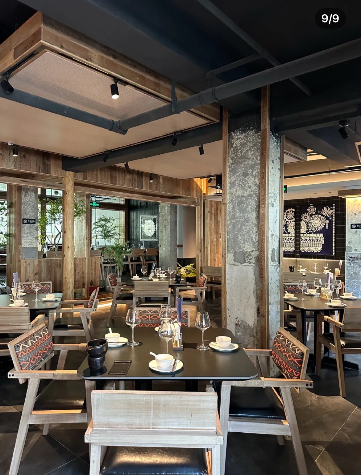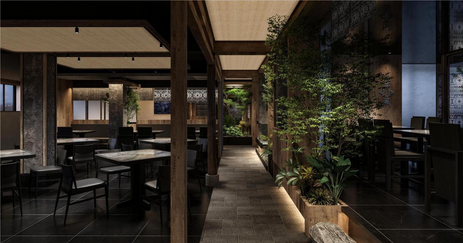 我们利用自然感、山与水、树与石、民族文化、灯光氛围融入餐厅设计中,让食物在空间氛围衬托下不单单只是满足生理需求的食物,而是让它变成了可以感知不同文化地域的饮食文化,达到更高生活品质的栽体。