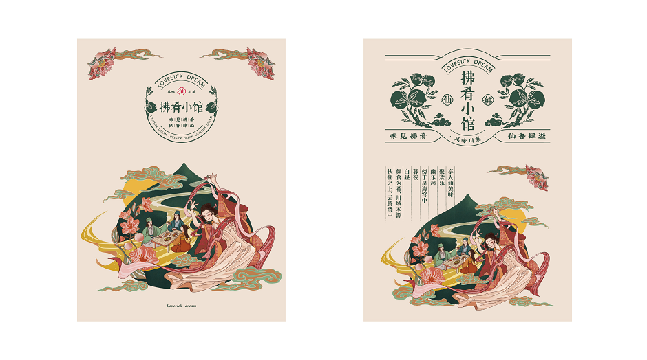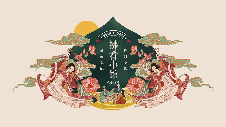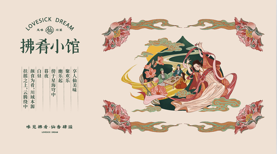 -拂肴小馆,在品牌名自带基因和调性基础上,我们从古风典雅的视觉效果入手,将食物的“鲜气”嫁接到品牌和场景的“仙气”,把产品和品牌、空间风格巧妙结合,不同于传统川菜的调性和风格,拂肴为消费者呈现的是耳目一新的川菜印象,通过差异化的展现对年轻消费群体产生更强烈的品牌感染